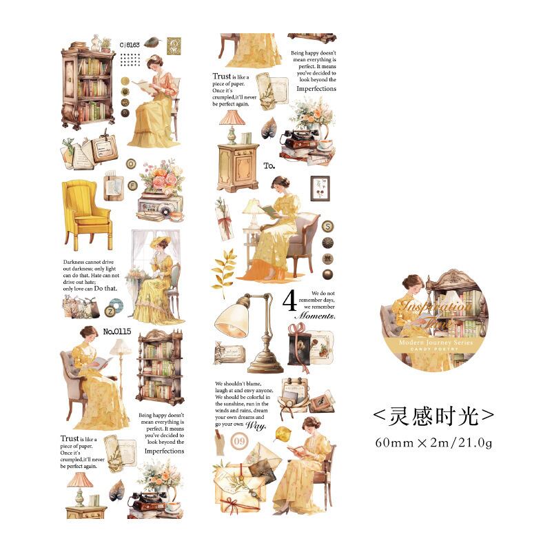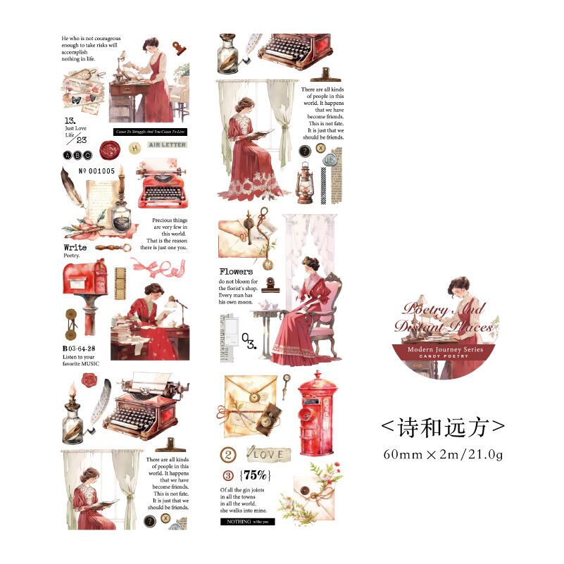 マットペット テープモダン トラベルダイアリーシリーズ ハンドブック DIYデコレーション タイル底材ステッカー 6点