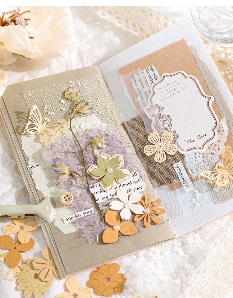 墨の花の透かし彫り庭のシリーズの手帳の紙のDIYの装飾のタイルの底の素材の6項