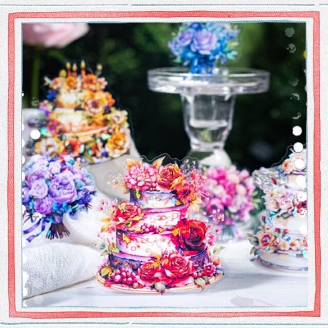 シールロマンチックな証言シリーズの花を持つケーキのテーマはヨーロッパの底を飾って6種類