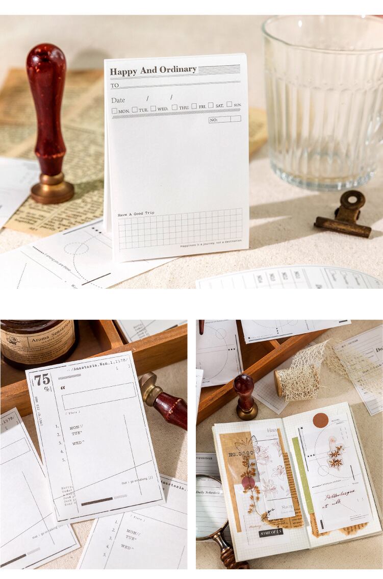 レトロメモ帳 イヤーズシアターシリーズ ライトレトロ DIY 装飾コラージュ ベース素材 メッセージ 6種類