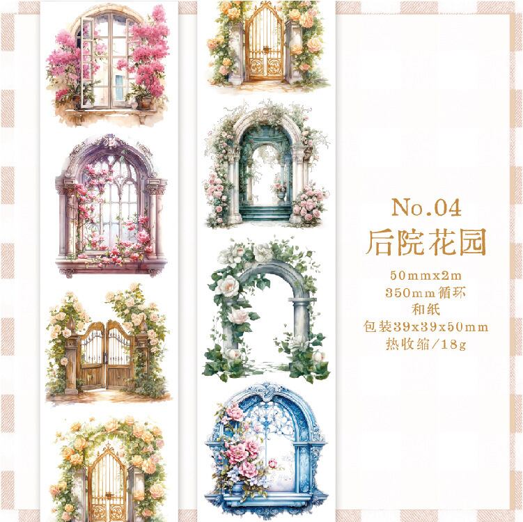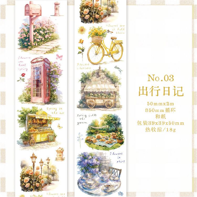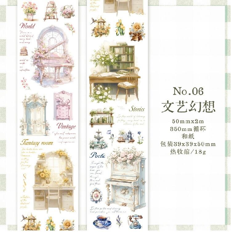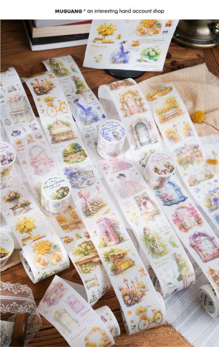 テープフラワーミラースペースシリーズハンドブック新鮮な素材ベースコラージュ DIY 装飾ステッカー牧歌的な 6 スタイル