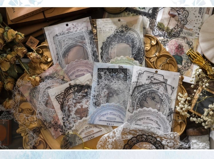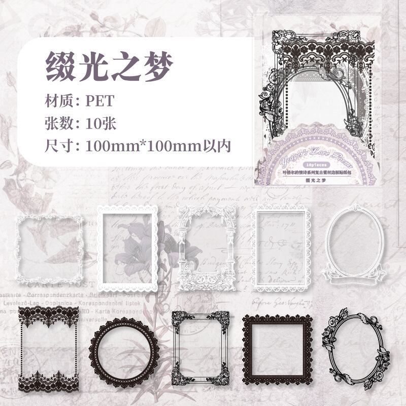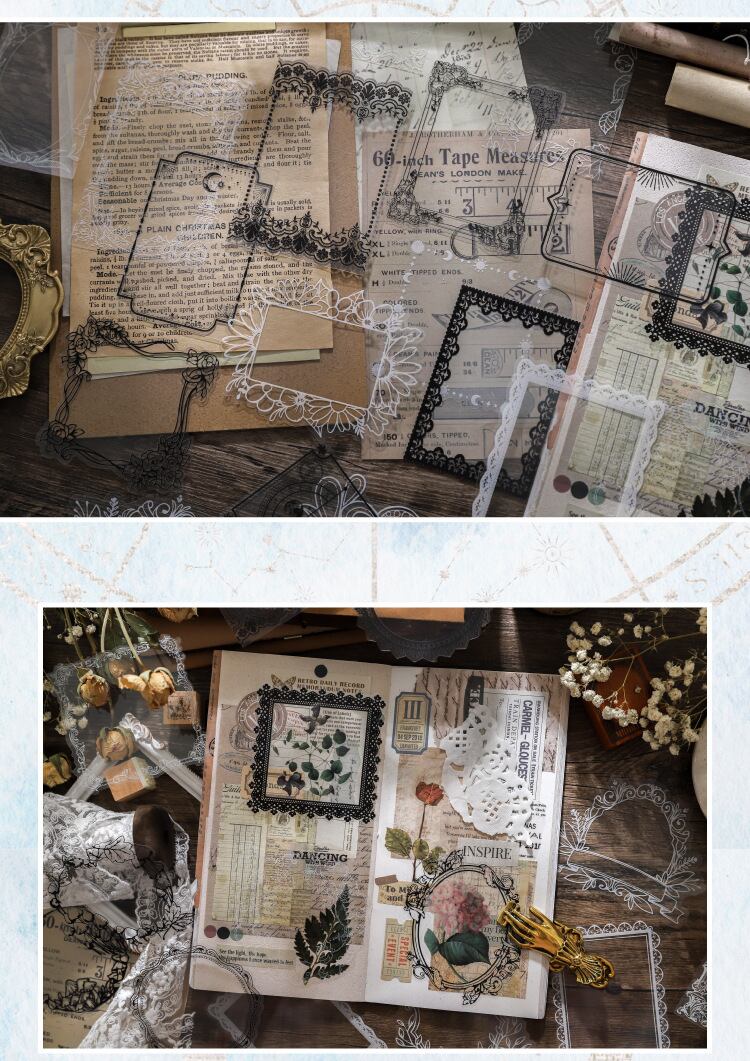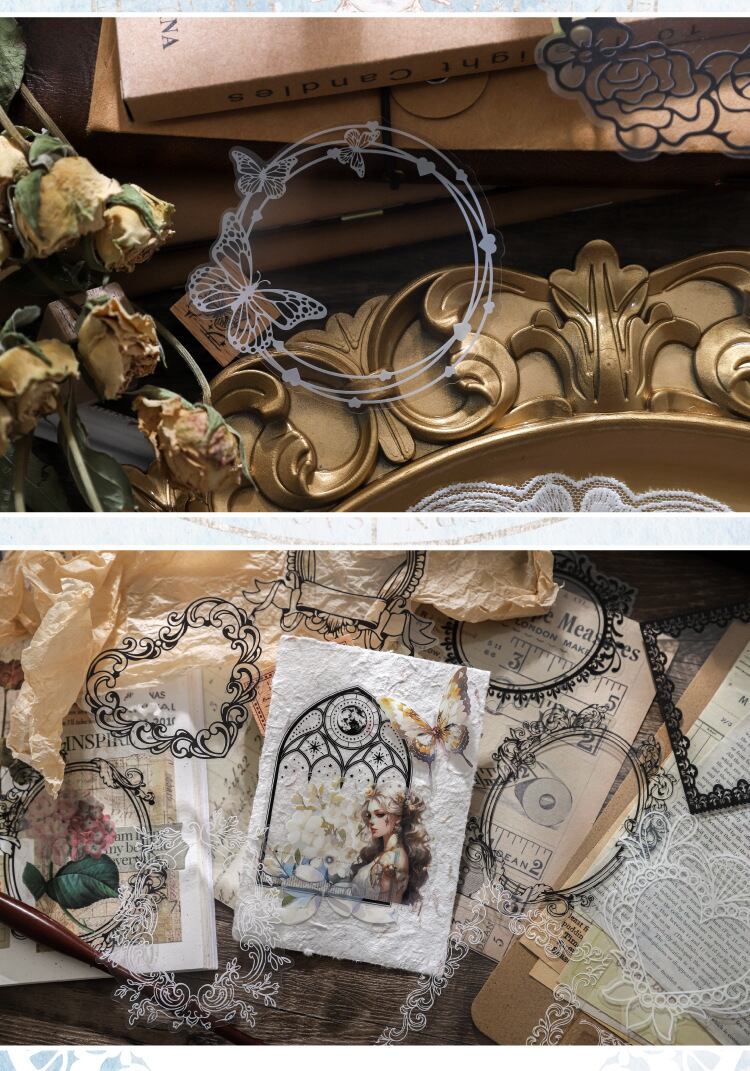 レースボーダーステッカーパック イェーガーの愛の詩シリーズ PET レトロレースハンドブック素材 装飾ステッカー 6 種類