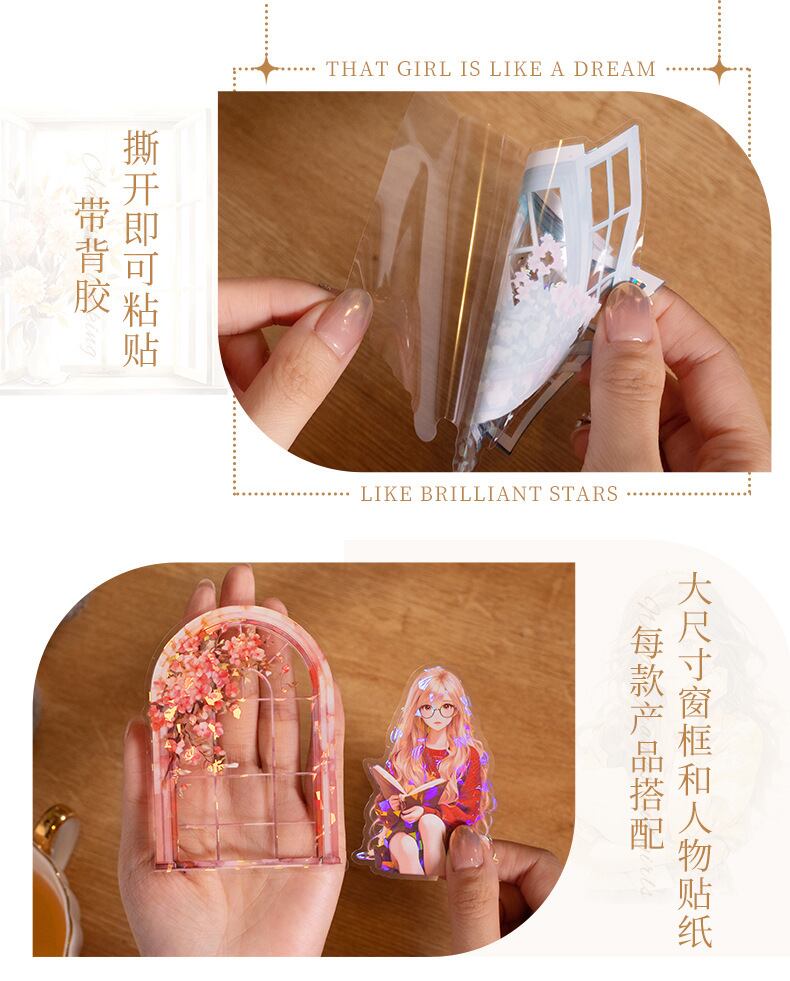 PET ステッカー 文学少女シリーズ キャラクター窓枠 シェルライト ハンドブック素材 装飾 6 スタイル