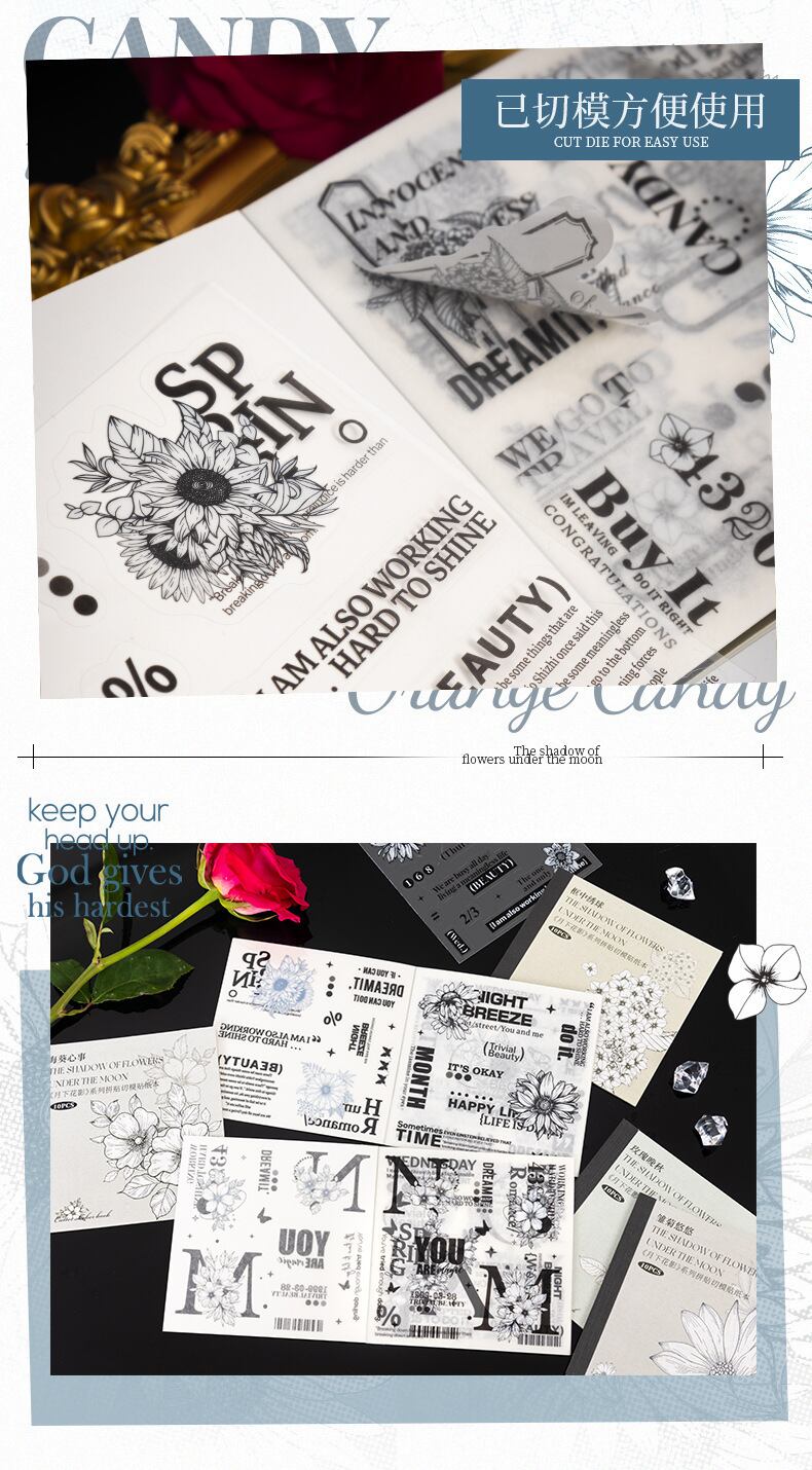 シール今月下花影シリーズタイルカット手帳素材タイル花卉打底6種類