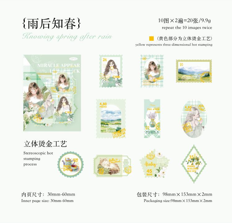 墨霧面PET立体箔押しシールバッグ優しい生活シリーズ手帳DIY装飾タイル4