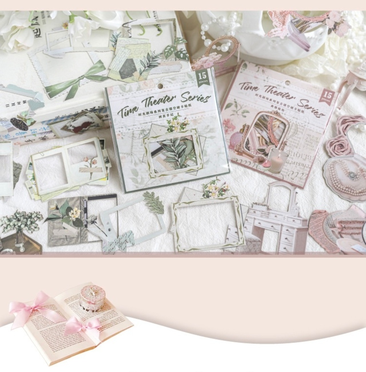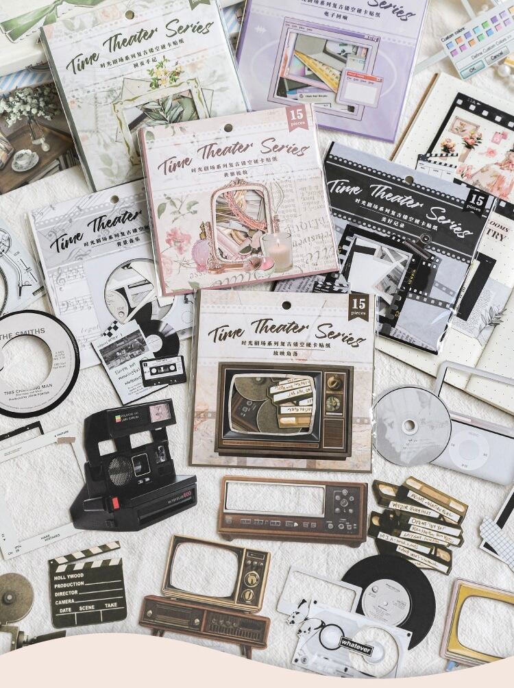 紙の跡の貼り紙の時間の劇場のシリーズの復古的な透かし彫りの硬いカードの手帳の素材の装飾のタイルは6種類