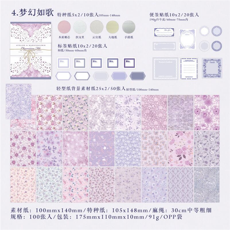 マルチマテリアル 素材パック 100枚入り 化粧紙 5種類から選べる化粧紙