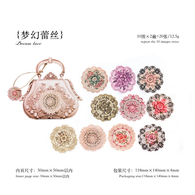 特製紙ステッカーパック ブリリアントストリーマーボックスシリーズ 選べる6柄20枚入 特殊形状レトロハンドブックデコレーション