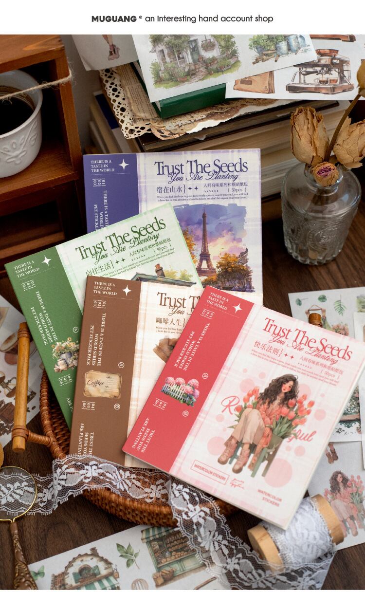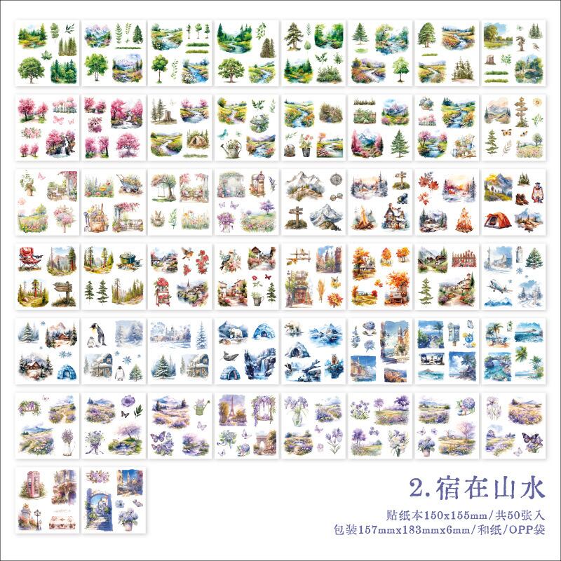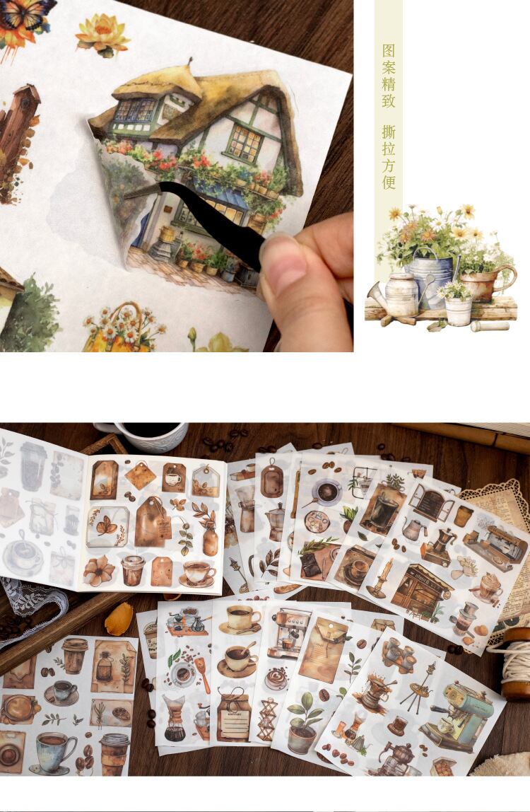 ダイカット和紙ステッカーブック Worldly Tasteシリーズ 日常生活素材デコレーションDIYステッカー4種50枚