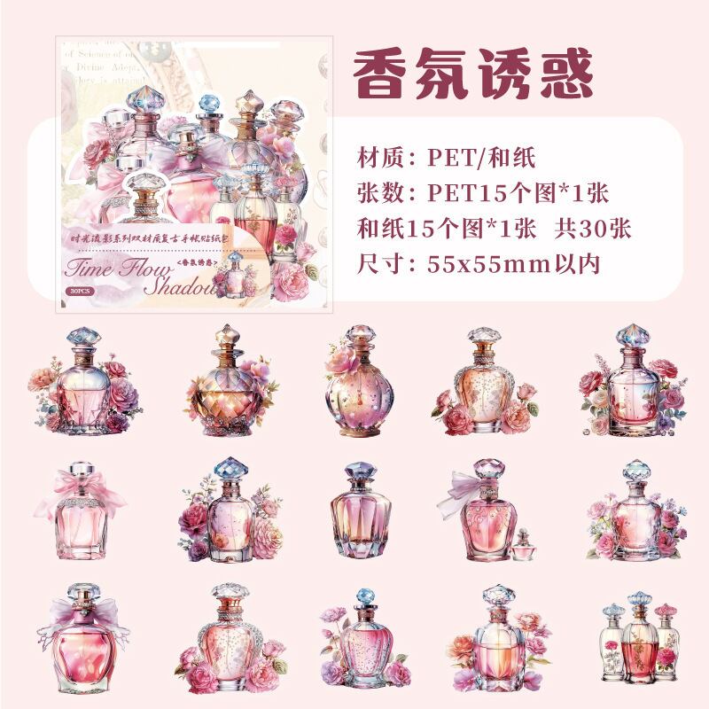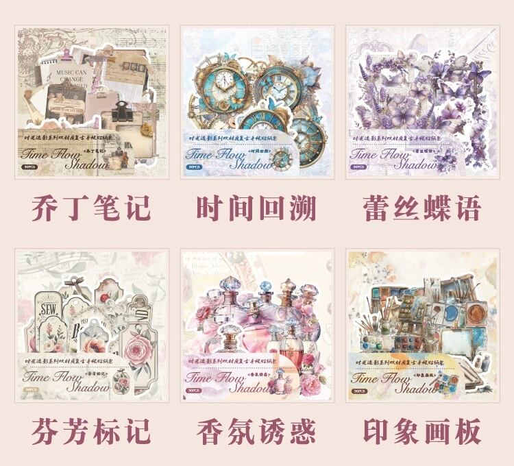 レトロな手帳のシールは時間の流れのシリーズの30枚の6種類の選択の異形のDIYのシールを包みます。