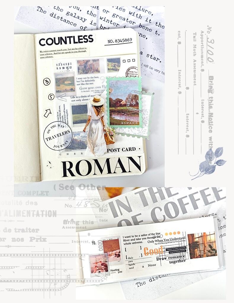 旅シリーズ霧面PET手帳レトロ装飾ヨーロッパ風タイル底6項