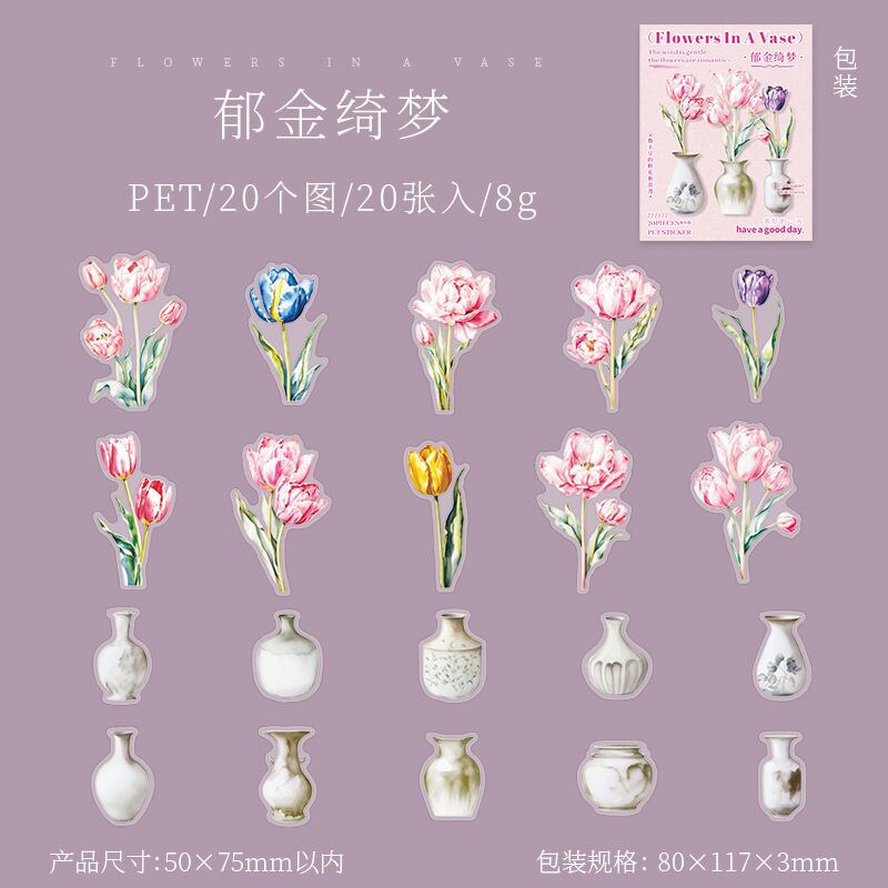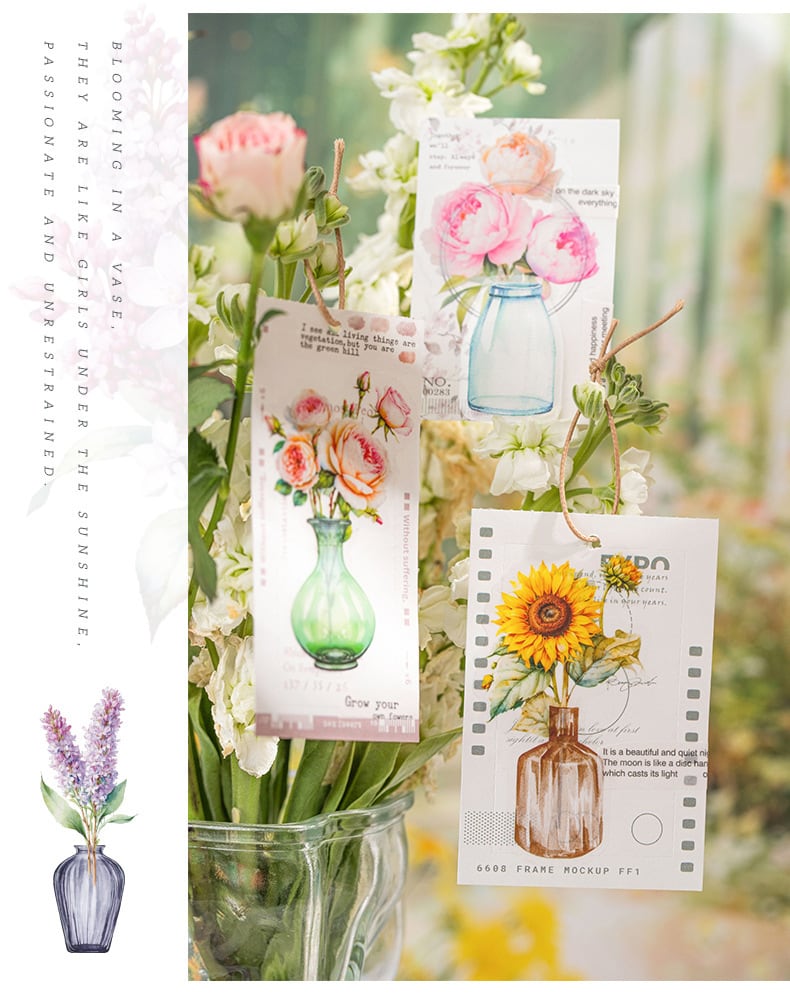 PETシール花瓶の花シリーズ6種類の花瓶花束テーマタイルシール