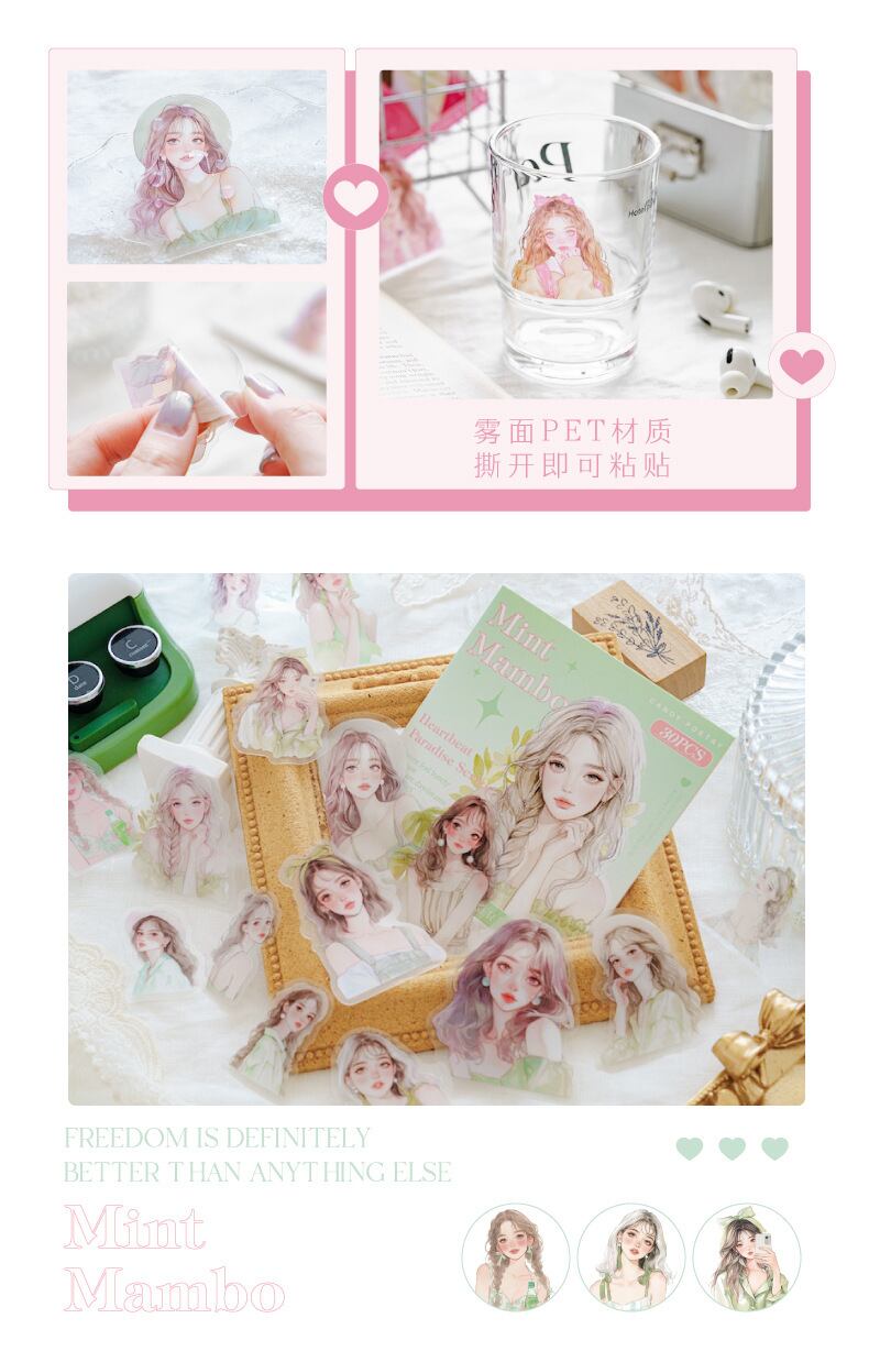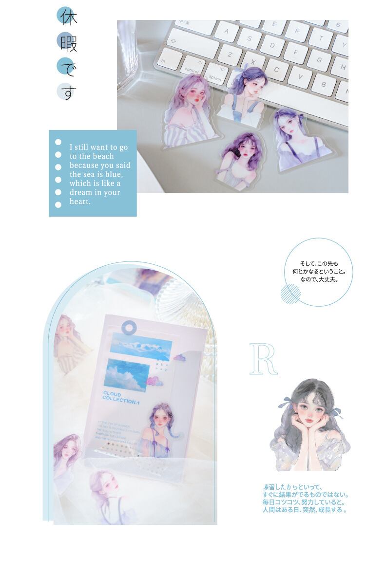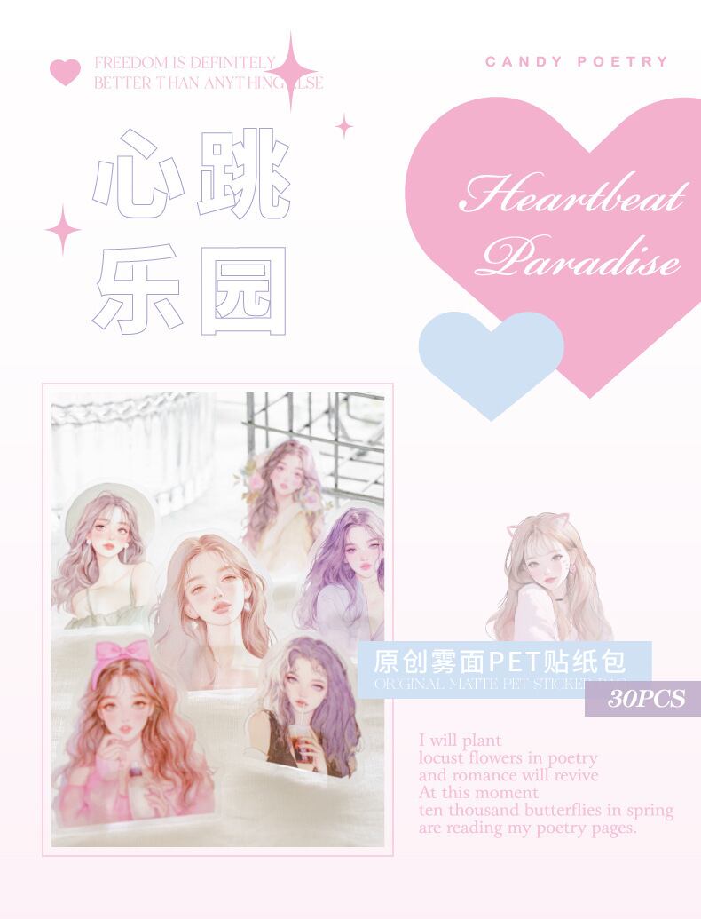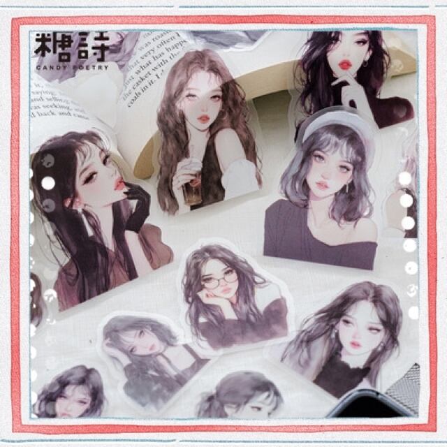 PETの白い墨のシールは心拍の楽園のシリーズの人物の女の子の素材の装飾のシールの6項を包みます。