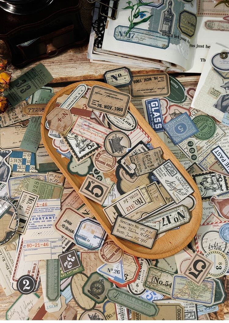 和紙ステッカーパック、デイリーラベルシリーズ、基本素材入り60枚、書き込み可能なデコレーションステッカー