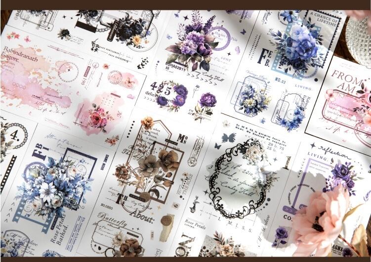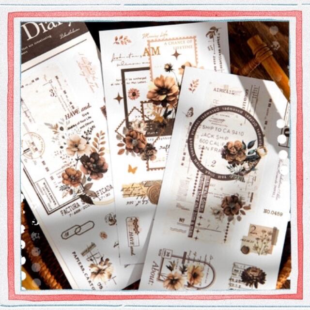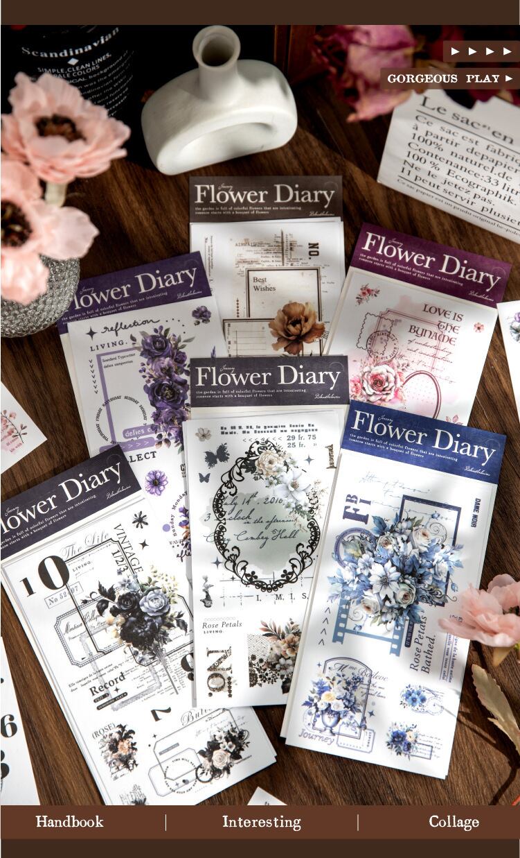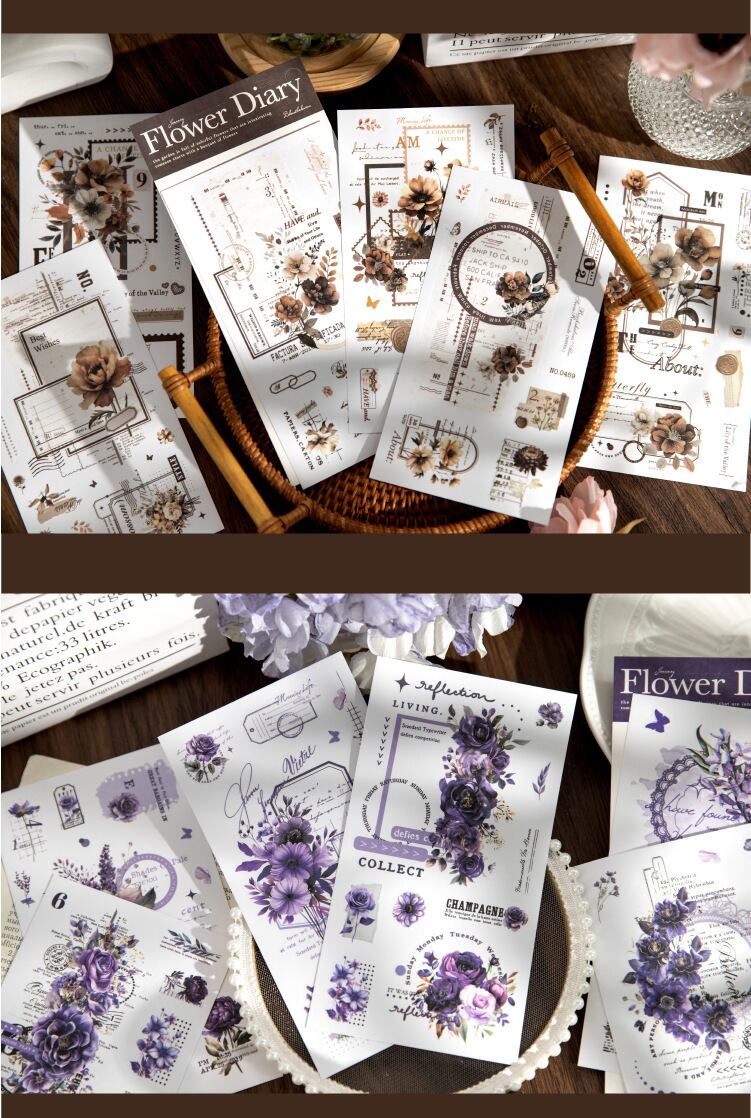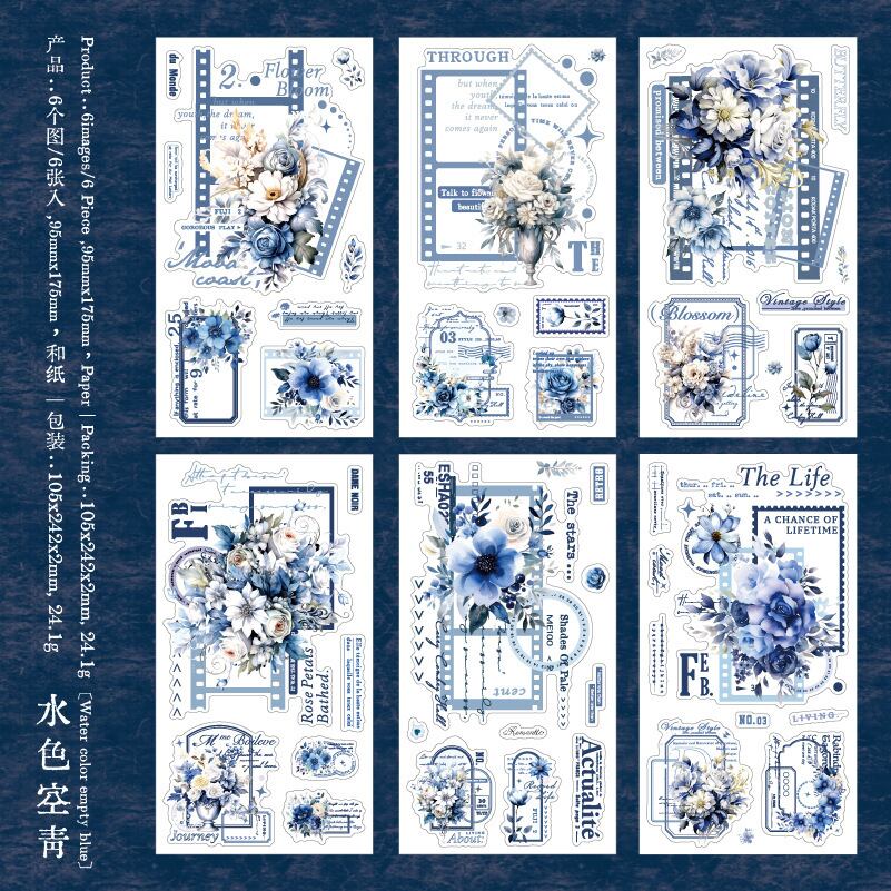 和紙素材ステッカー、花日記シリーズ、ハンドブック素材装飾コラージュベースDIYステッカー6種類