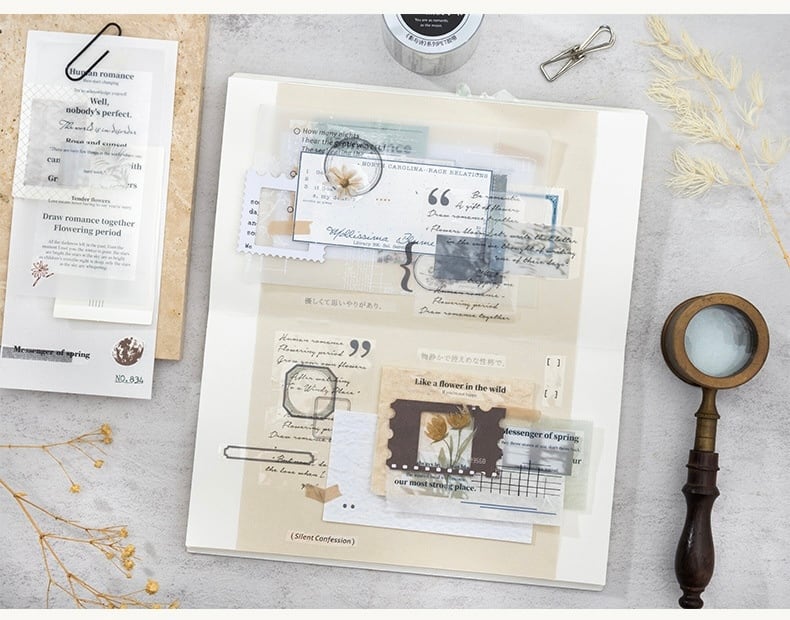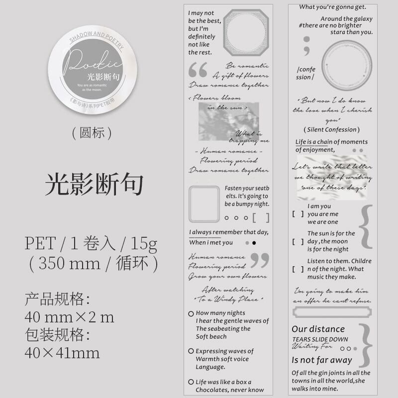 PETテープ影と詩シリーズ6種類透明英語テーマ素材DIYシール