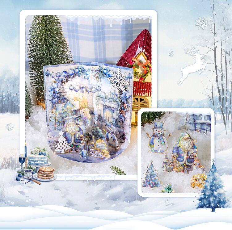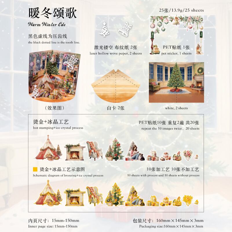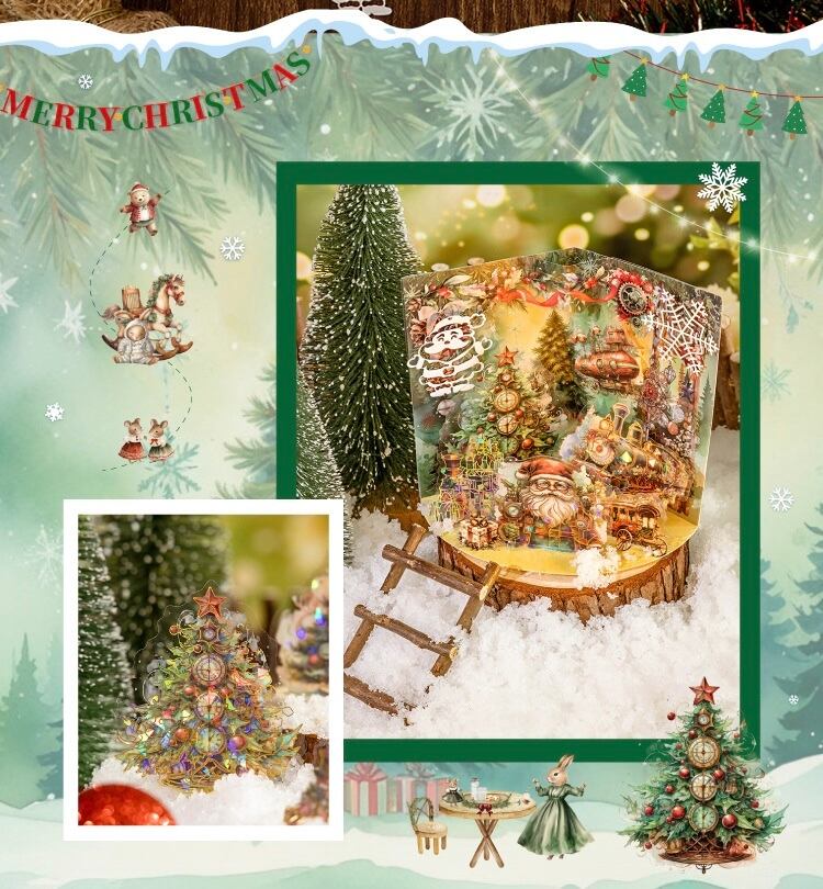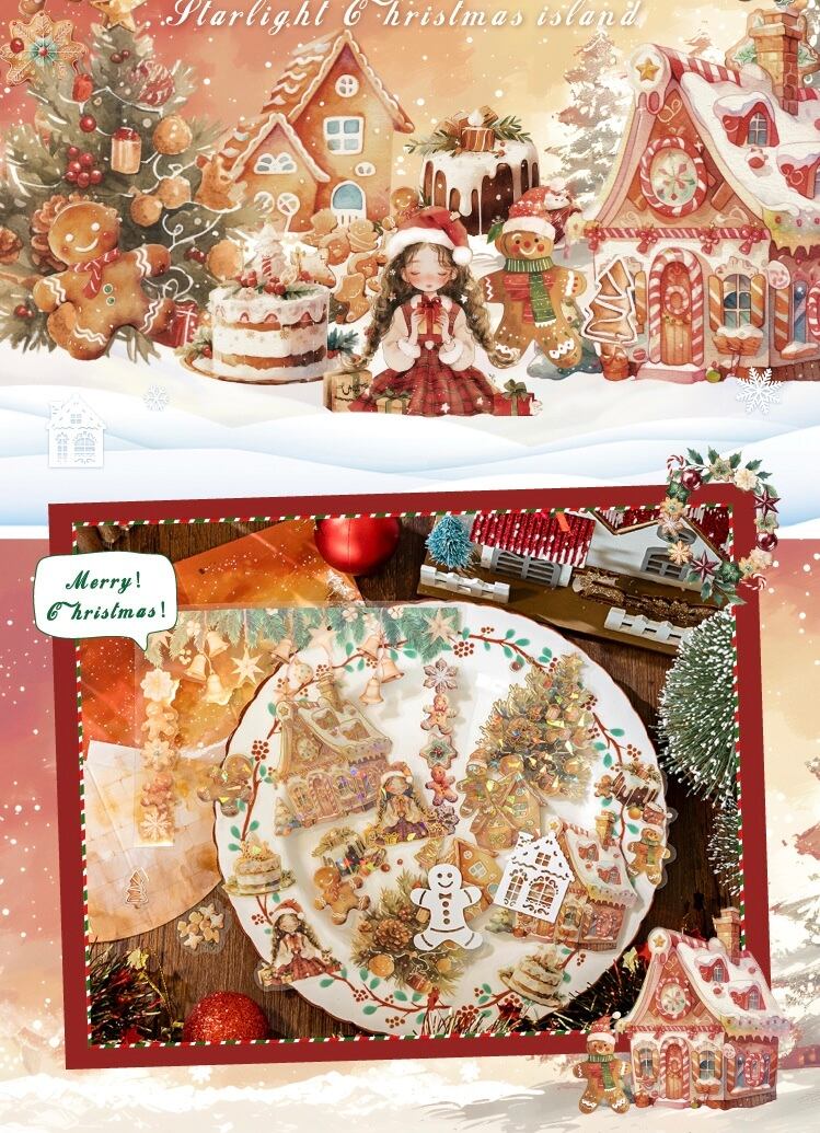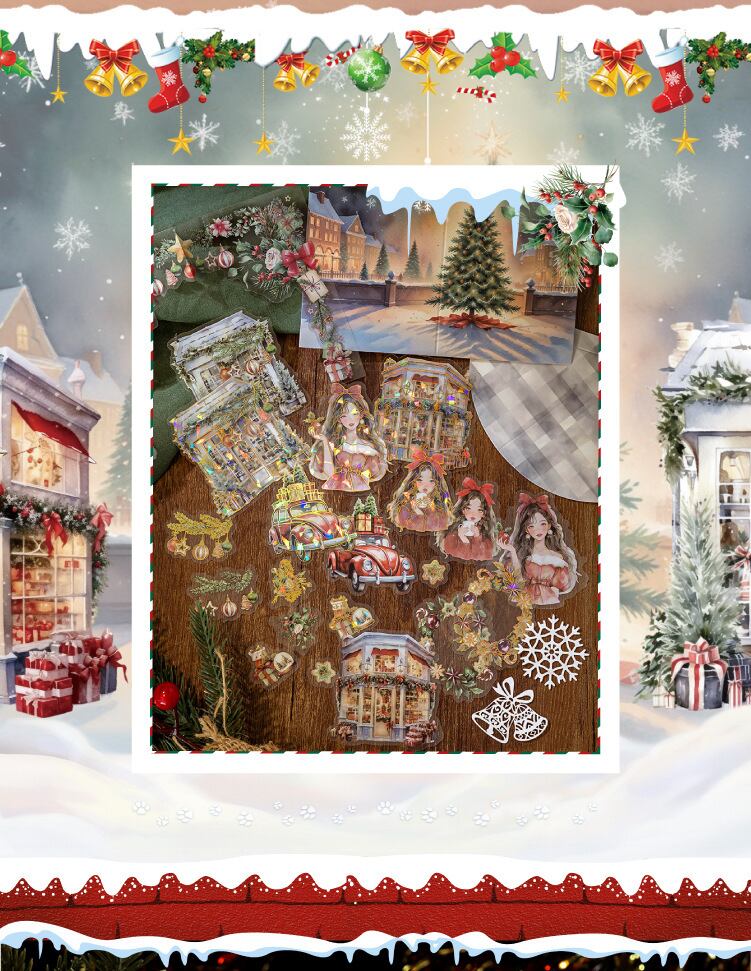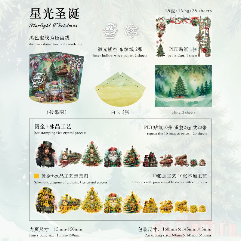 混合材質氷晶箔押しシール星光クリスマス島シリーズ25枚入6種類の素材シール