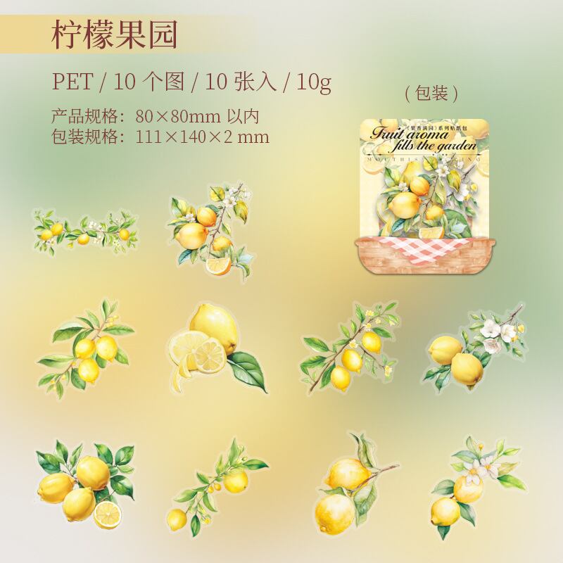 大サイズPETシール包果香満園シリーズ6種類の果物テーマ素材シール