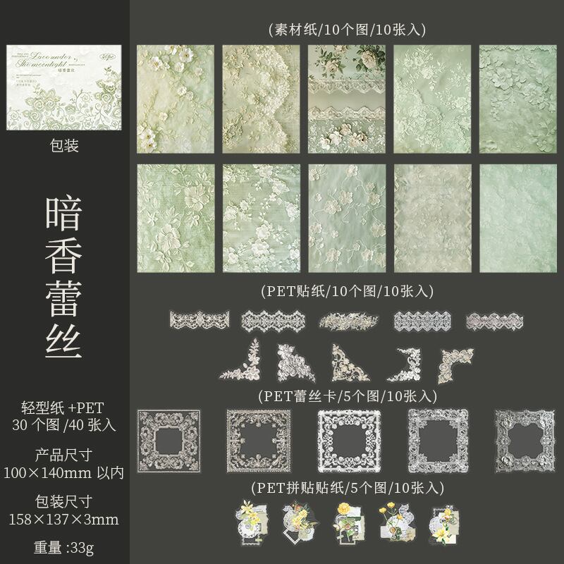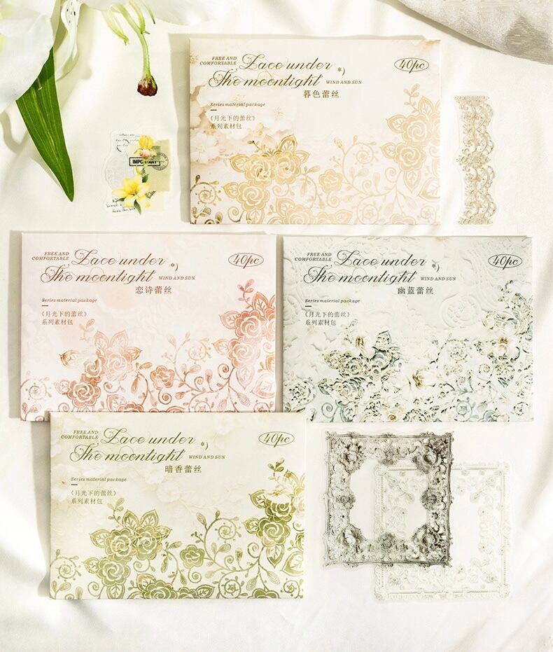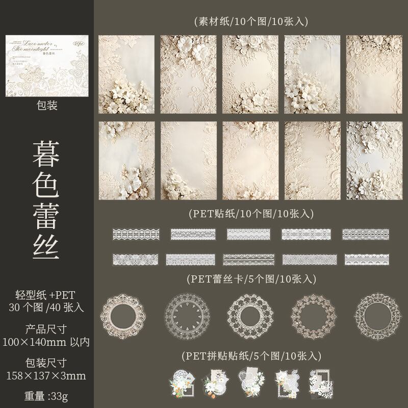 レースのテーマの素材は月明かりの下のレースのシリーズの4種類を包んで40枚を選んで多材質に入ります