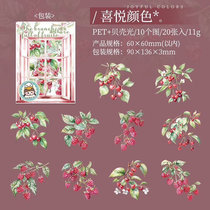 シェルライトステッカーパック フルーツフルブランチシリーズ 6種 選べる20枚入PETデコレーションステッカー