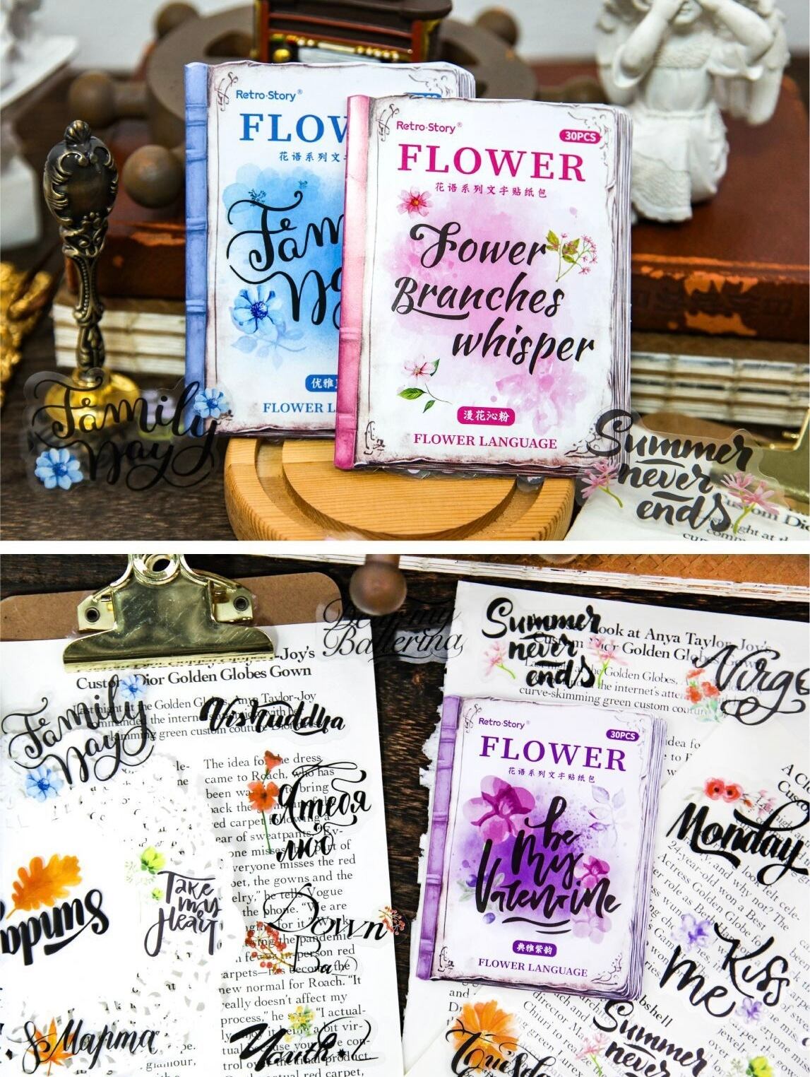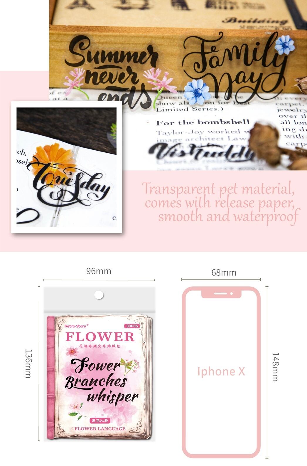 Storyステッカーパック花言语シリーズ30枚PET英语カラフル文字素材ステッカー6アイテム