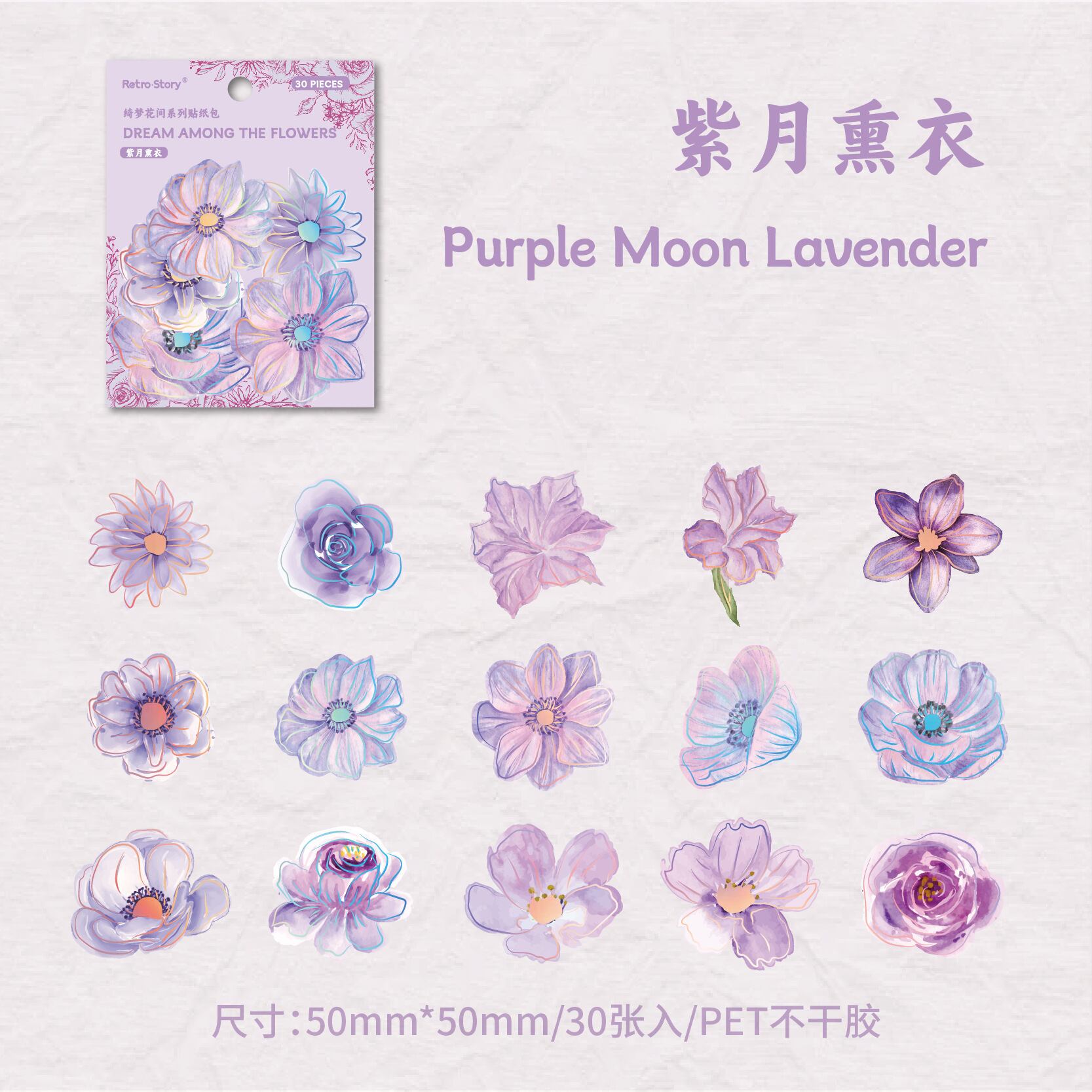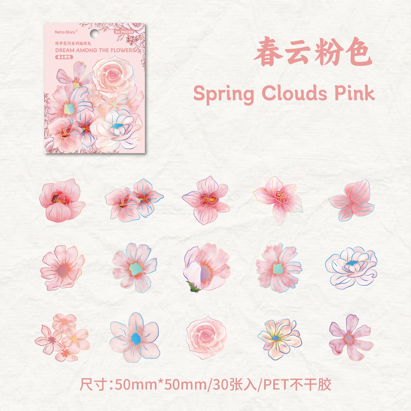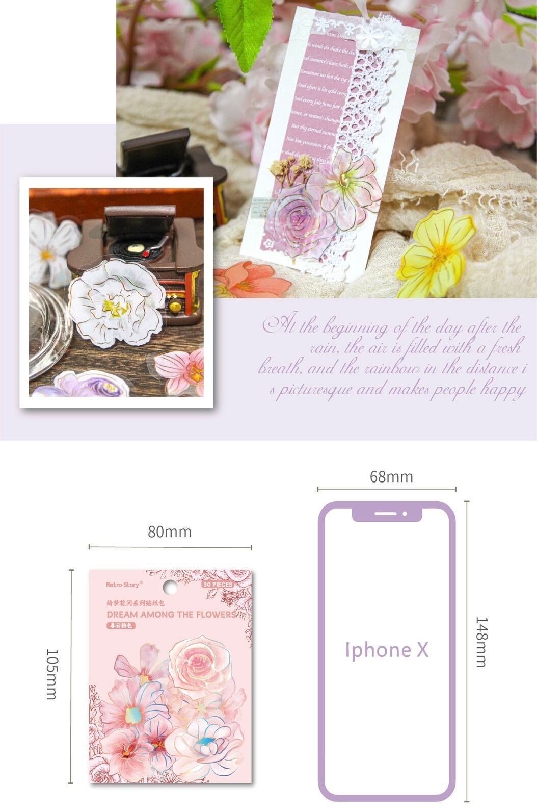 ステッカーパック夢花間シリーズ30枚入PET花モチーフ素材飾り6アイテム