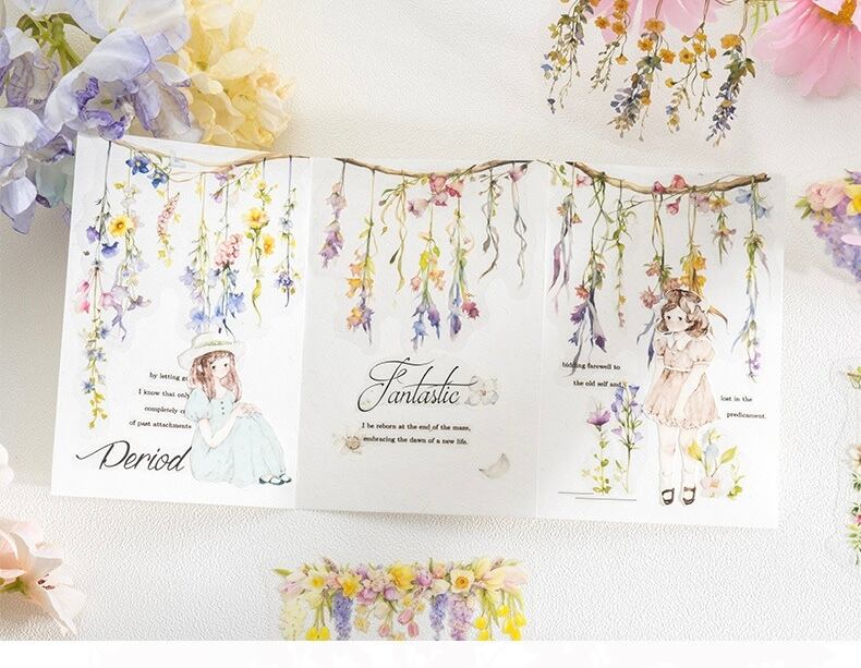 ステッカーパックフラワータイムシリーズ造園ハンドブック素材レトロヨーロッパコラージュベース6スタイル