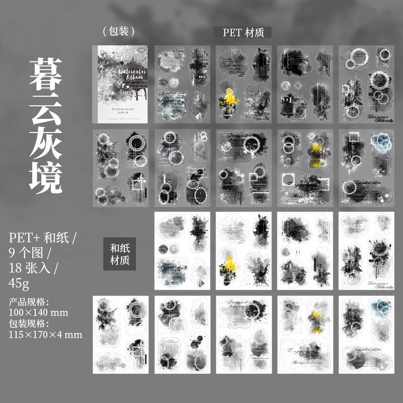 ダブル素材ダイカット紙本水彩画アルバムシリーズ6種類選択18枚入色素材