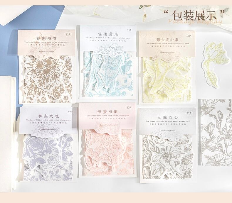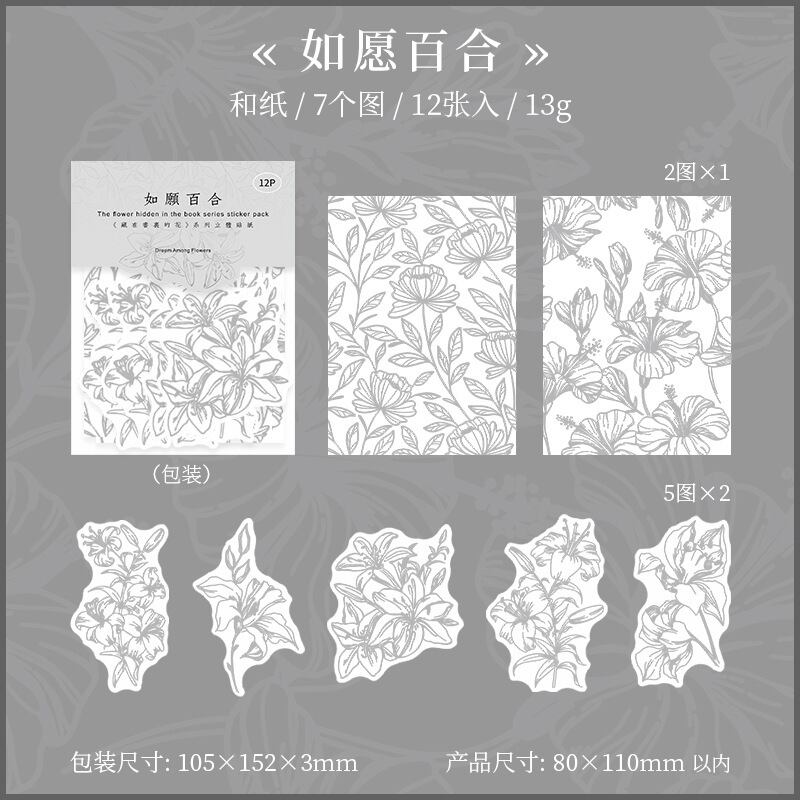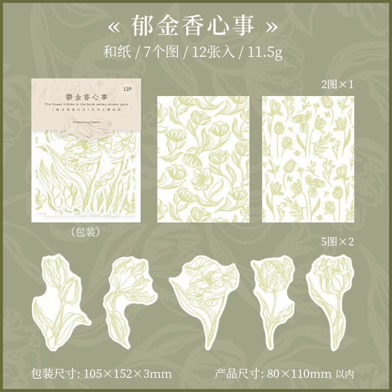 シール本に隠された花シリーズモランディ系植物手帳素材12枚