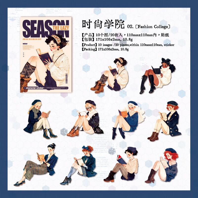 キャラクターオイルシールパック Lazy Seasonシリーズ 特殊形状の女の子素材シールを含む6種20枚厳選