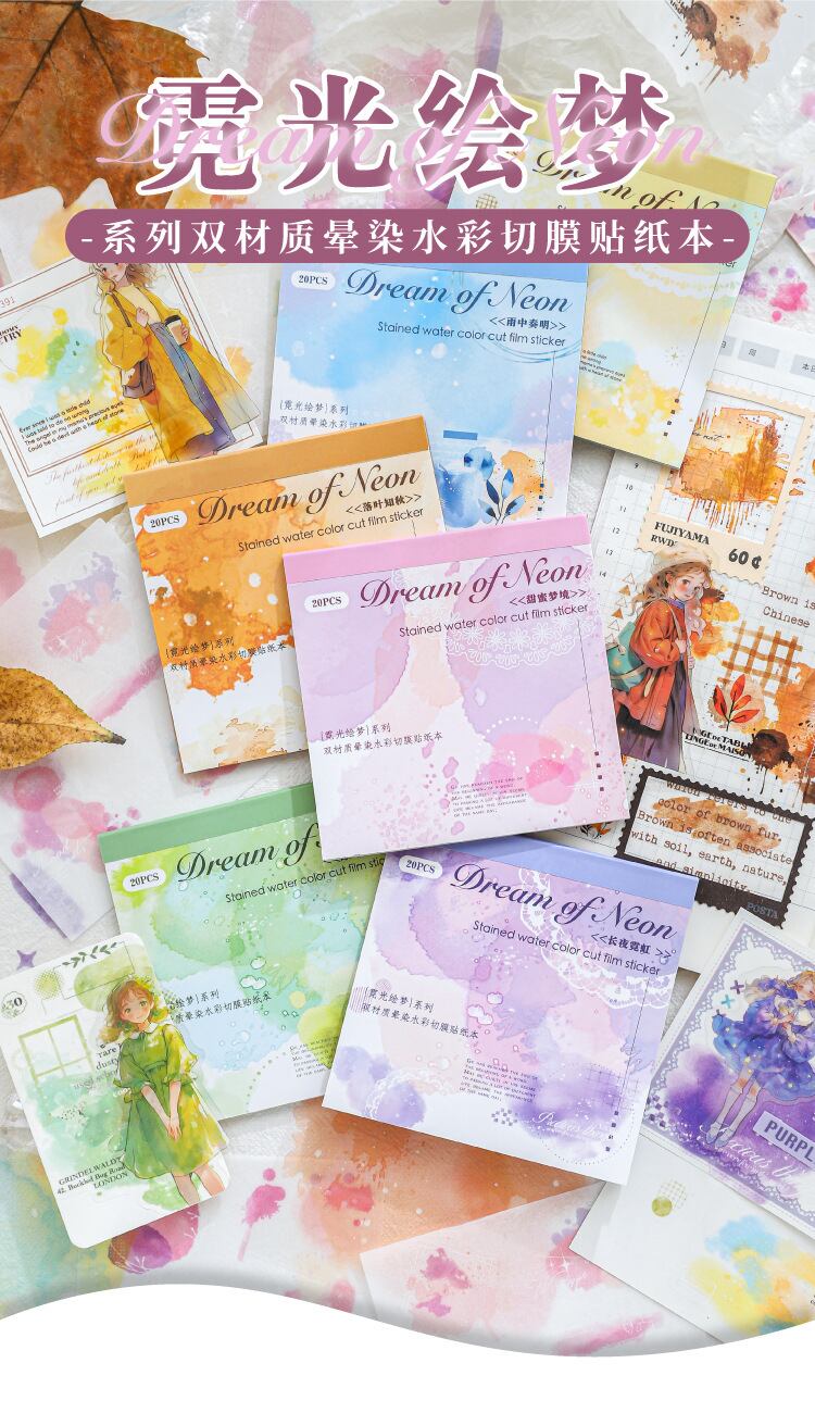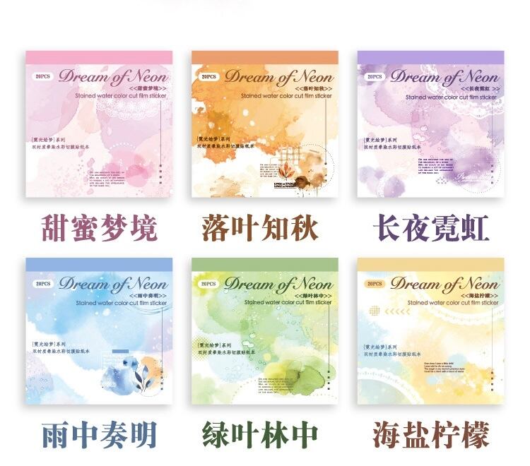 紙トレースダブル素材ブルーミング水彩カットフィルムステッカーブックネオン絵画ドリームシリーズ 6 スタイル選択 20 カラーテーマ