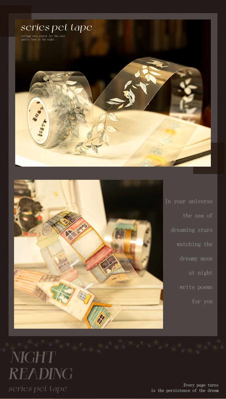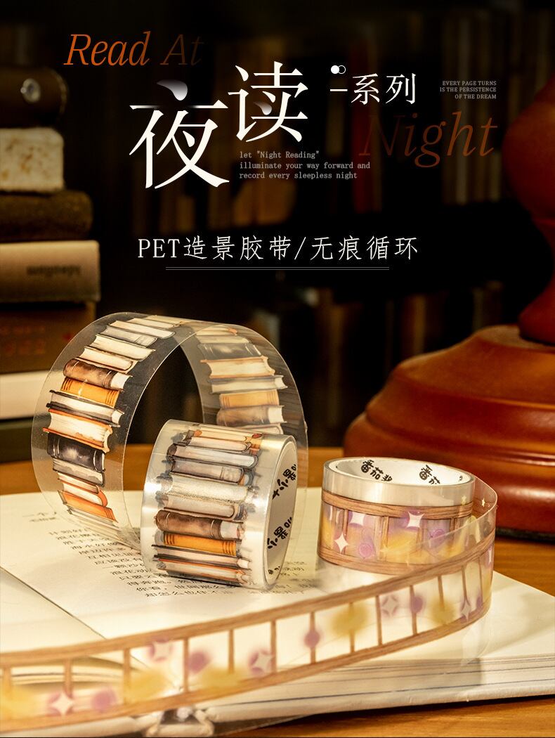 PET 造園シームレステープ夜間読書シリーズ 6 ライフスタイルハンドブック材料ベース装飾 DIY