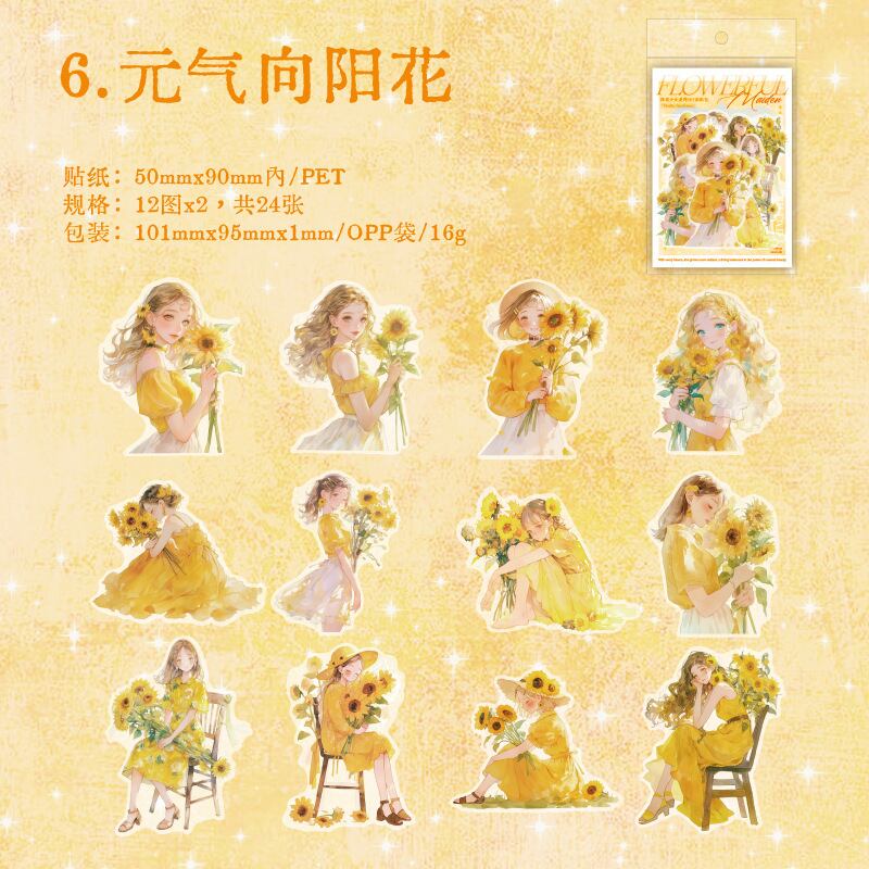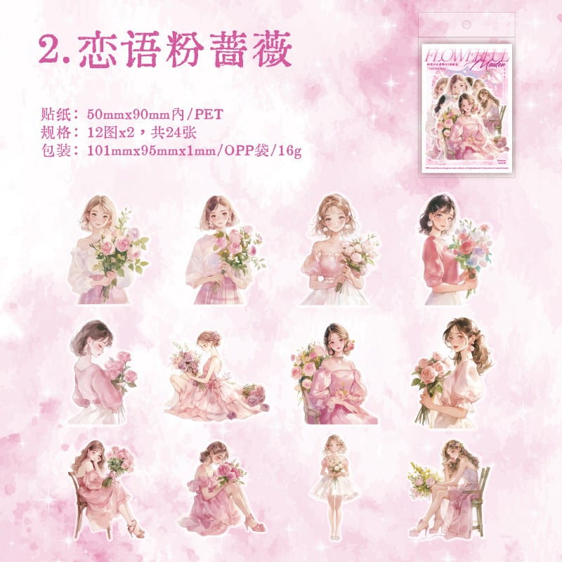 ブーケガールシリーズ PET ステッカーパック新鮮なハンドブック素材コラージュヨーロピアンスタイルベース装飾ステッカー 6 スタイル